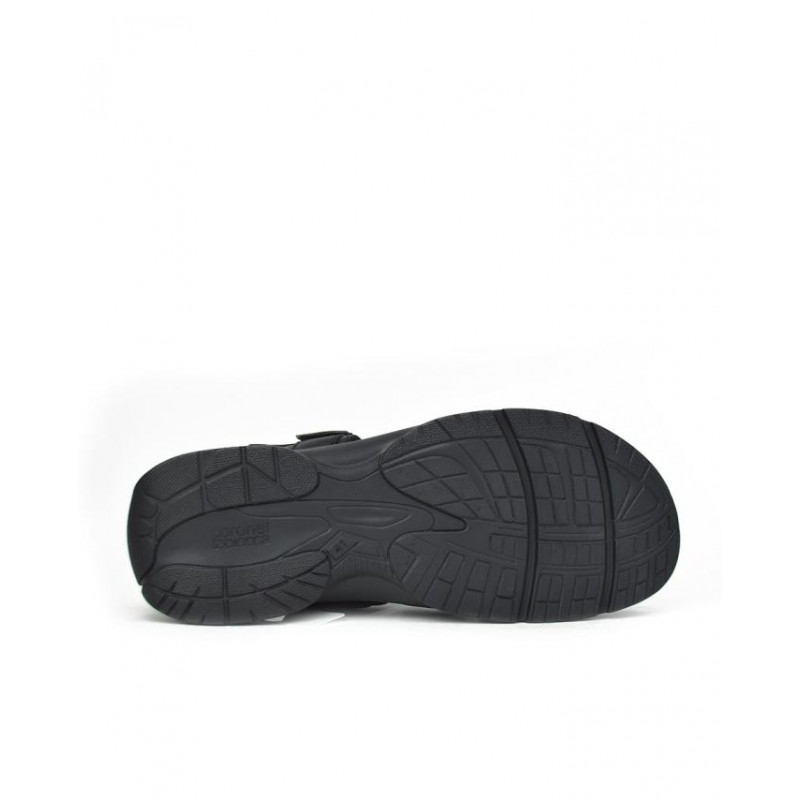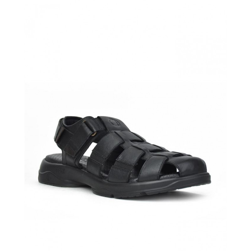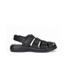 Sandalia caballero en piel negro, cierre de velcros, suela ligera de pu de 3 cm altura, forro textil, planta bio de piel perforada. Composición: Empeine: Piel. Forro: Textil. Plantilla: Piel. Suela: Fibra sintética. Componente principal: Piel