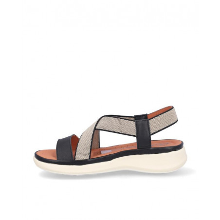 Sandalia cruzada Kangaroos combinado beige/negro, forro textil, planta acolchada de piel, suela ligera de eva de 3 cm altura. Composición: Empeine: Piel y textil, Forro: Textil, Planta: Piel, Suela: Eva.