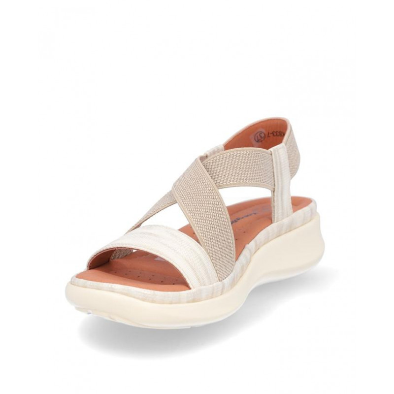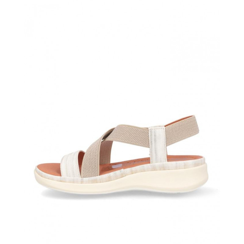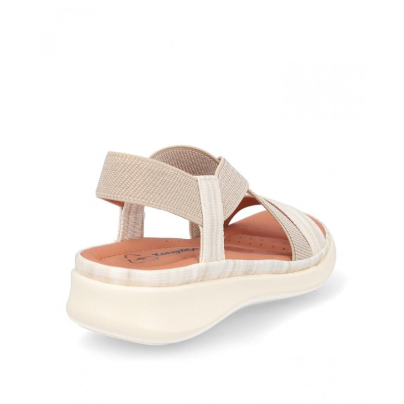 Sandalia cruzada Kangaroos combinado beige/marfil, forro textil, planta acolchada de piel, suela ligera de eva de 3 cm altura. Composición: Empeine: textil y otros materiales, Forro: textil. Planta: Piel, Suela: Eva