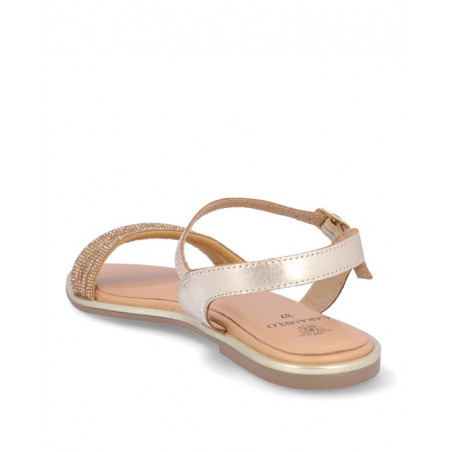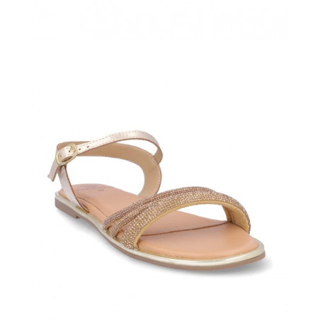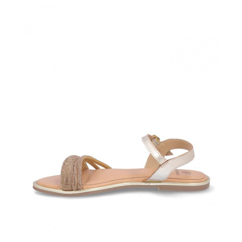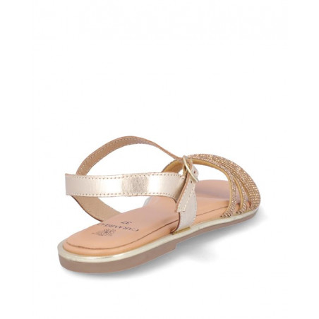 Sandalia marca Caramelo fabricada en piel color oro, cierre con hebilla, forro y plantilla de piel. Composición: Empeine: Piel. Forro y plantilla: Piel. Suela: Fibra sintética. Componente principal: Piel