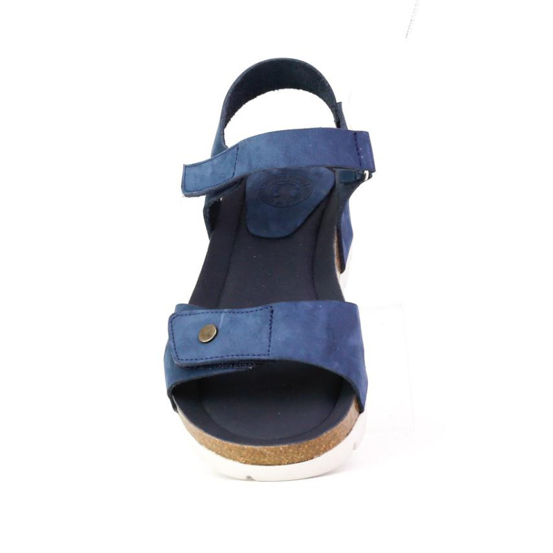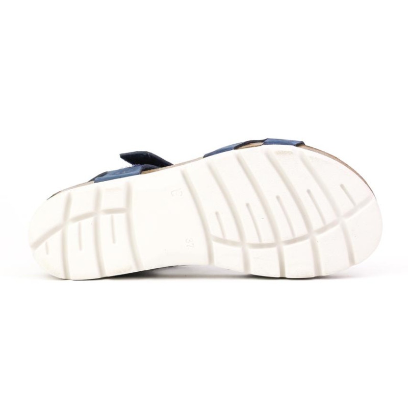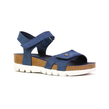 Sandalia dos piezas piel nobuck azul ajustable mediante velcros.