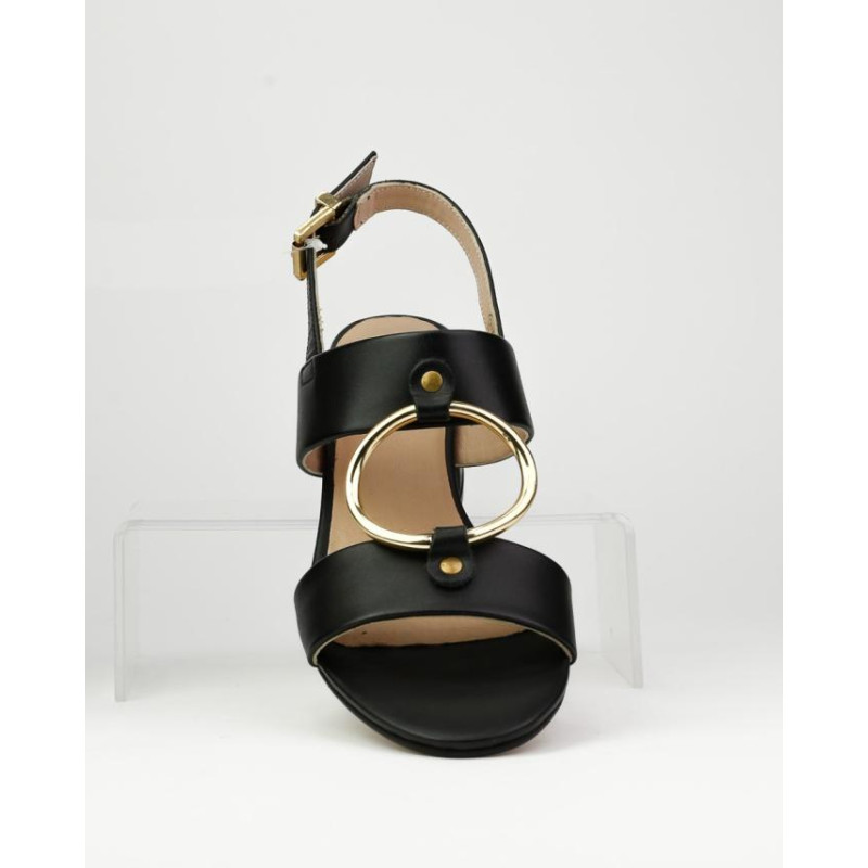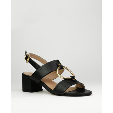 SANDALIA TACON 3.5 CM CON HEBILLA GRANDE COMO ADORNO. HEBILLA COMO CIERRE AJUSTE