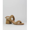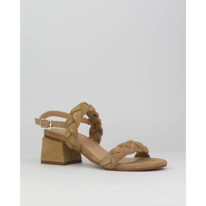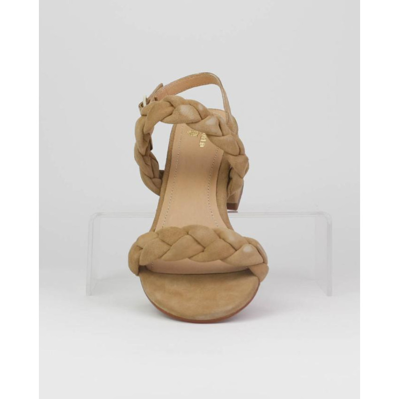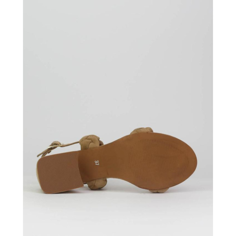 Sandalia mujer ante marca Caremelo. Fabricado en ante premium esta formada por dos tiras trenzadas de forma artesanal y un cierre con una hebilla trasera con un pequeño elastico para mejorar la adaptabilidad al pie. Altura de tacón de 6.5 cm incluyendo la plantilla. Forrado en piel la planta vacuno. Planta ligeramente acolchada para mejorar la comodidad sin perder elegancia. Luces estas sandalias en tu día a día como en algún evento.