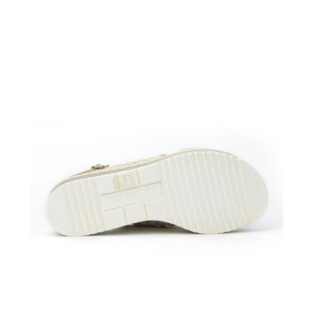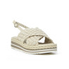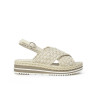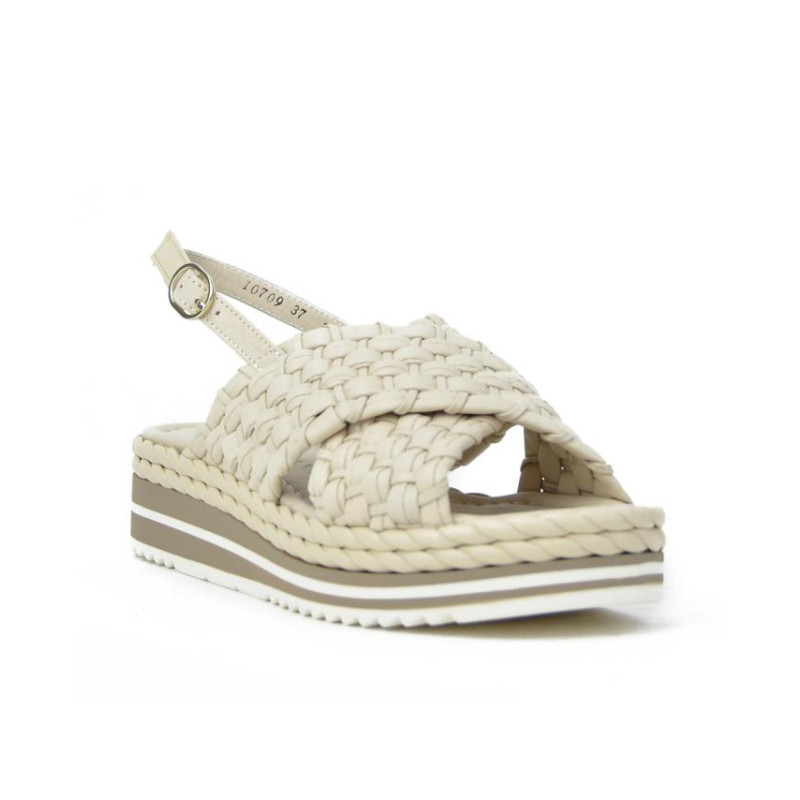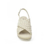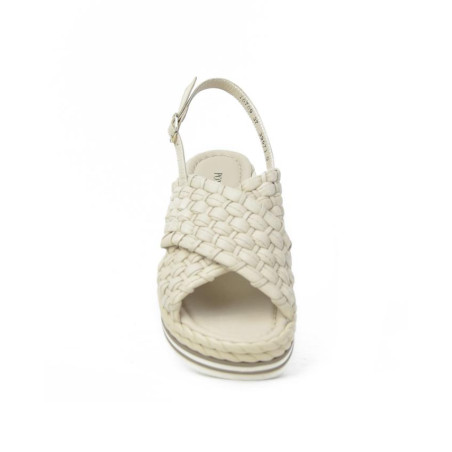 Sandalia marca PONS QUINTANA modelo SANDALIA CRUZADA TRENZADO GRANDE PISO TUBULAR. Fabricado en piel color blanco roto, cierre con hebilla. Suela corrida personalizada.