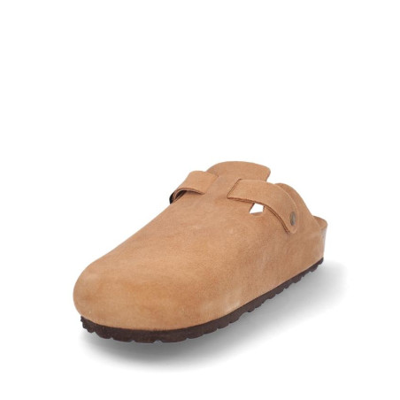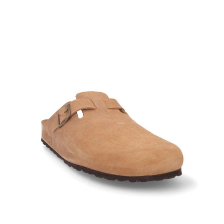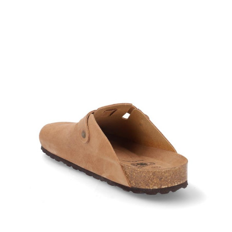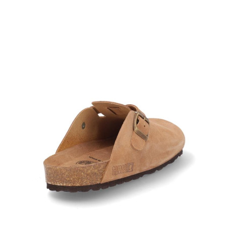 Zueco caballero fabricado en serraje havana con hebilla laterial, altura planta bio acolchada, fabricado en España. Composición: Empeine: Piel. Forro: Piel. Planta: Piel. Suela: Fibra sintética. Componente principal: Piel