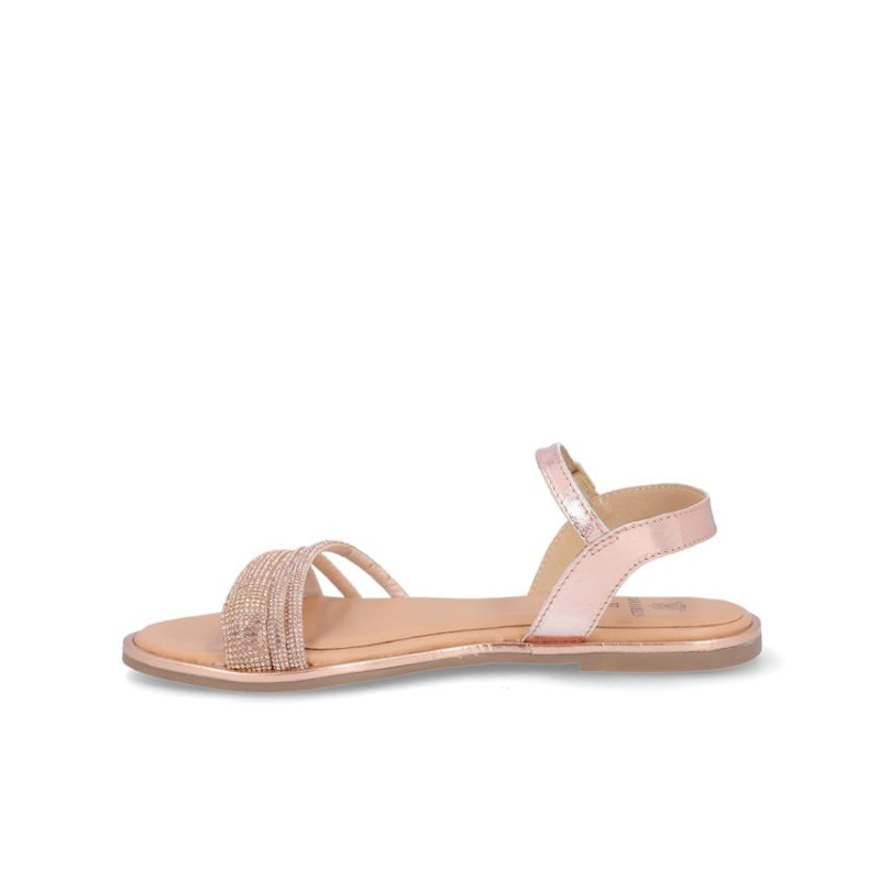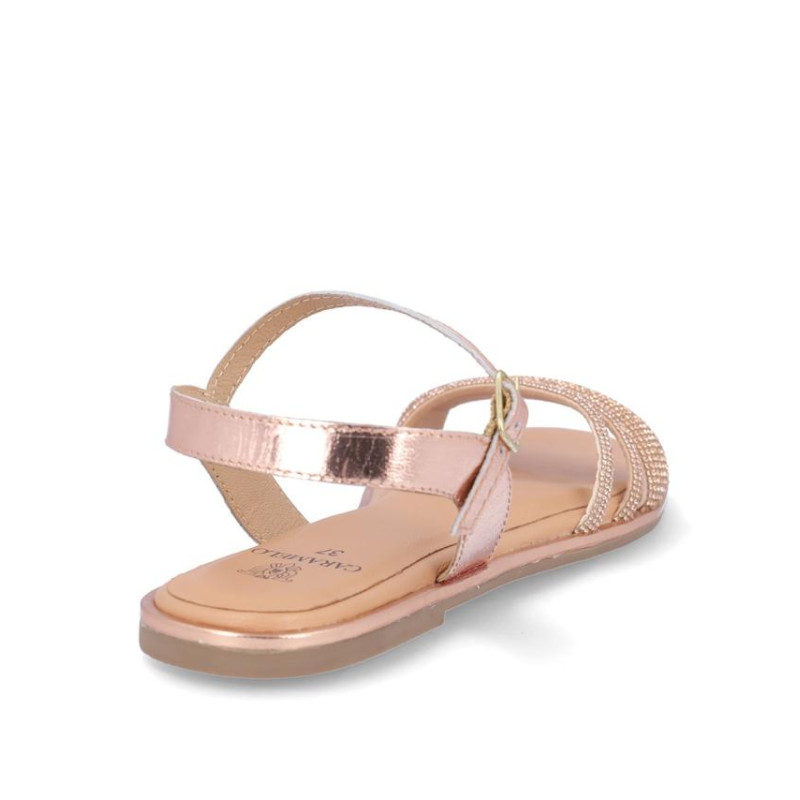 Sandalia marca Caramelo fabricada en piel color rosa metalizado, cierre con hebilla, forro y plantilla de piel. Composición: Empeine: Piel. Forro y plantilla: Piel. Suela: Fibra sintética. Componente principal: Piel