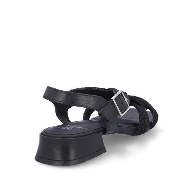 Sandalia marca Caramelo fabricada en piel color negro, cierre con hebilla, forro y plantilla de piel. Composición: Empeine: Piel. Forro y plantilla: Piel. Suela: Fibra sintética. Componente principal: Piel