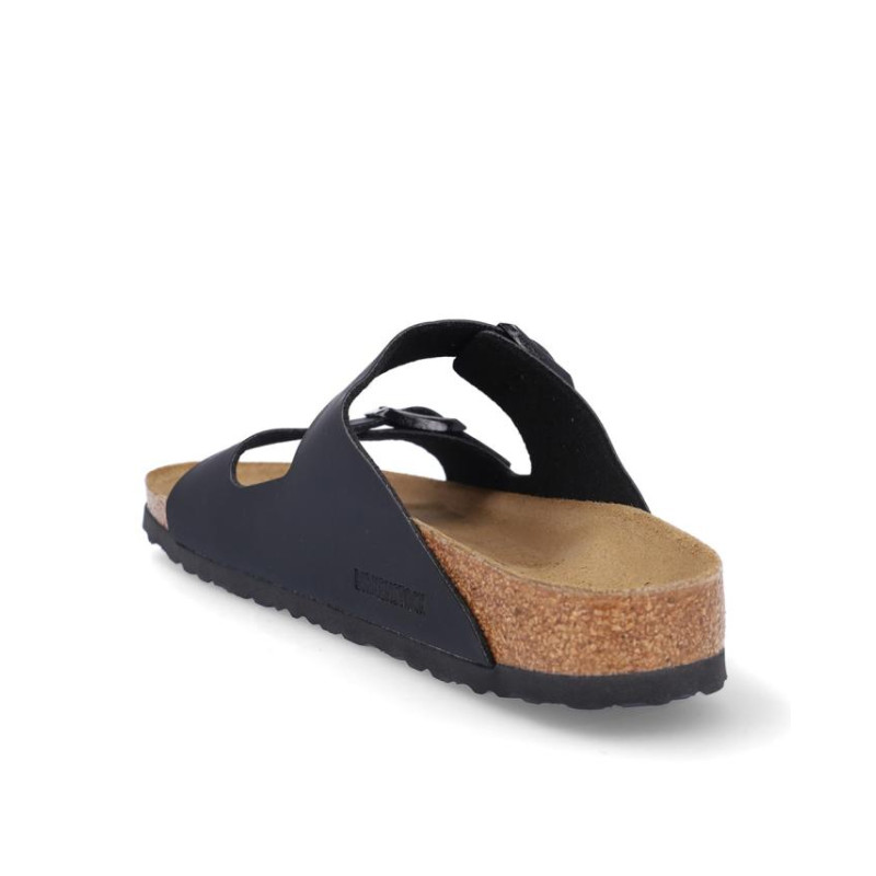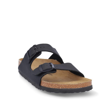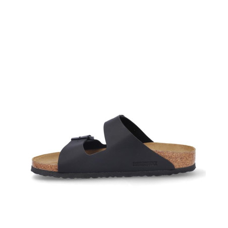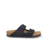 Sandalia marca Birkenstock modelo 2 hebillas arizona birko flor. Fabricado en color negro, con dos hebillas delanteras. Suela personalizada.
