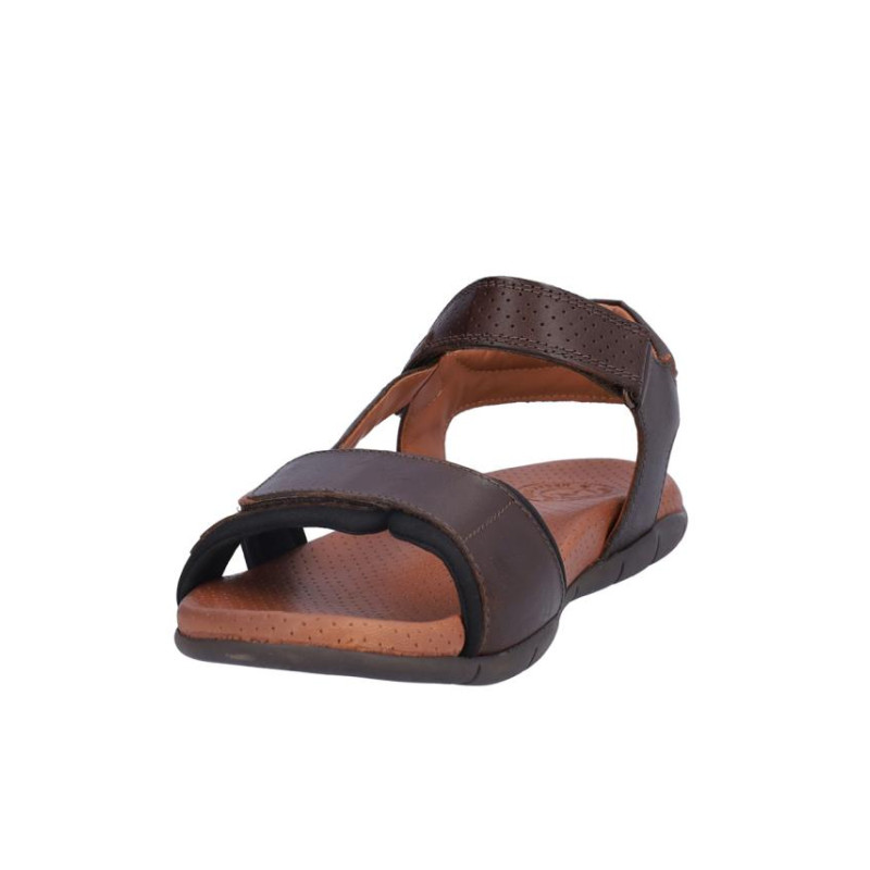 Sandalia Kangaroos de caballero Kangaroos en piel marrón con cierre de velcro, forro de piel, planta bio de piel perforada y suela con 2,5 cm altura. Composiciòn: Empine: Piel. Forro y planta: Piel. Suela: Fibra sintética. Componente principal Piel.