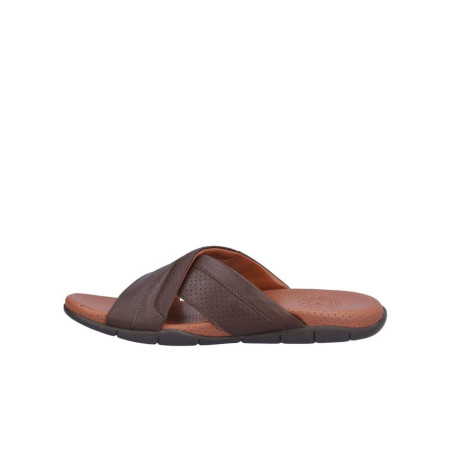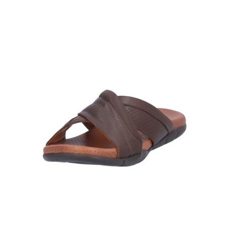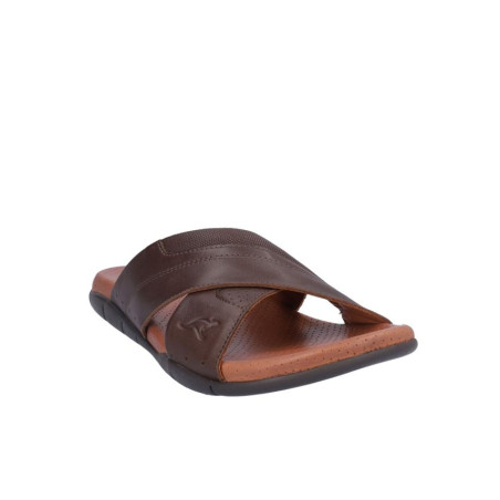 Sandalia Kangaroos cruzada de caballero en piel marrón, forro de piel, planta bio de piel perforada, suela de 2,5 cm altura. Composición: Empeine: Piel. Forro y planta: Piel. Suela: Fibra sintética. Componente principal: Piel.
