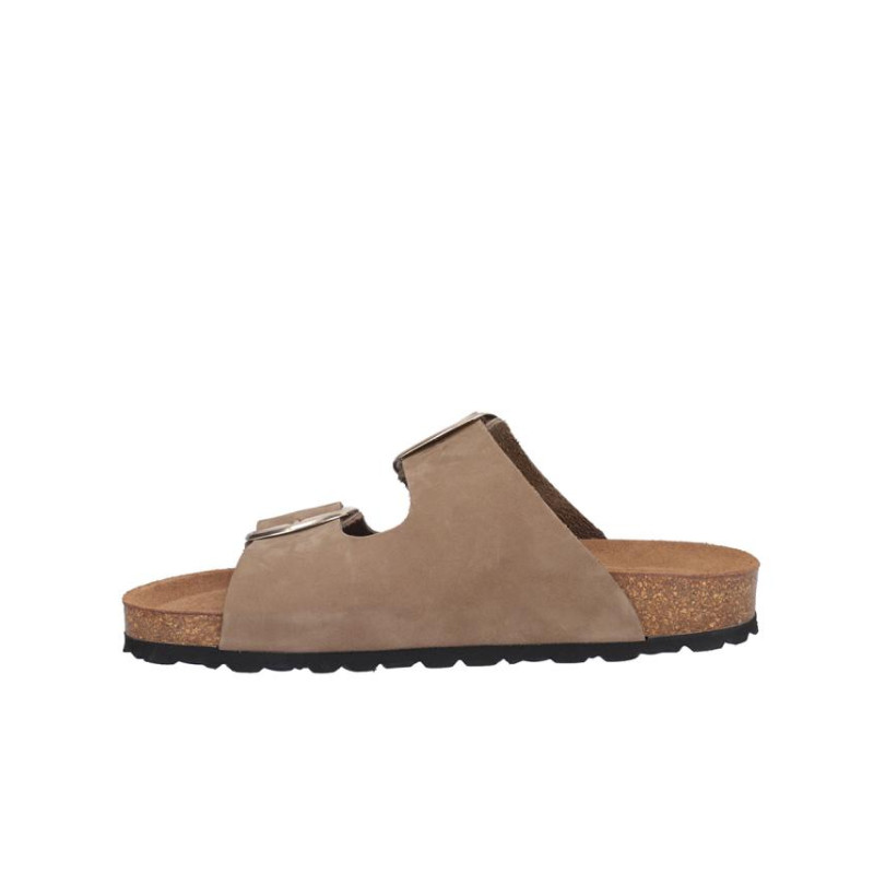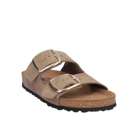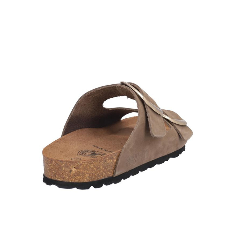 Sandalia señora Coronel Tapiocca en nobuck kaki, cierre de dos hebillas, altura planta bio acolchada, fabricado en España. Composición: Empeine: Piel. Forro: Sin forro. Planta: Piel. Suela: Fibra sintética. Componente principal: Piel