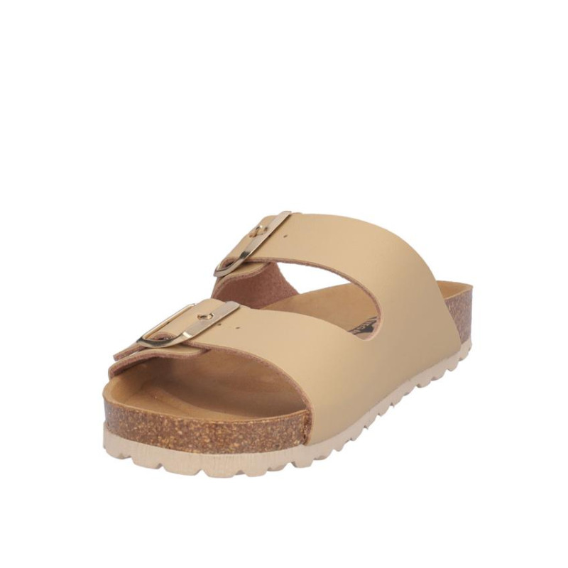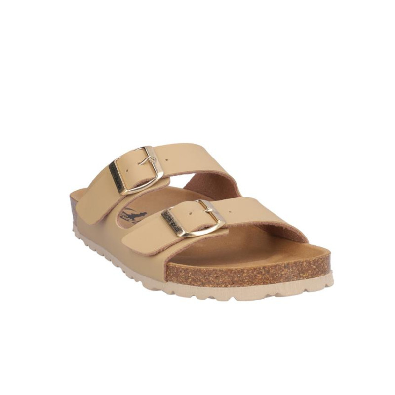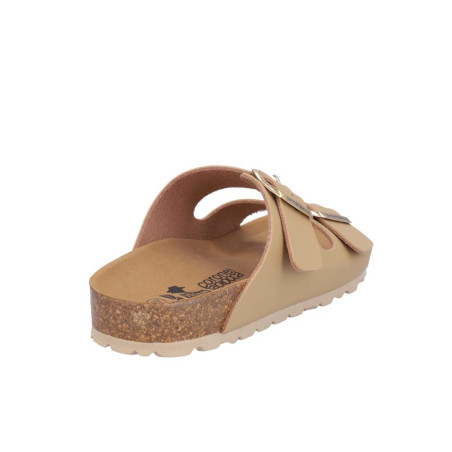Sandalia señora Coronel Tapiocca en material vegano beige, cierre de dos hebillas, altura planta bio acolchada, fabricado en España. Composición: Empeine: Piel. Forro: Sin forro. Planta: Piel. Suela: Fibra sintética. Componente principal: Piel
