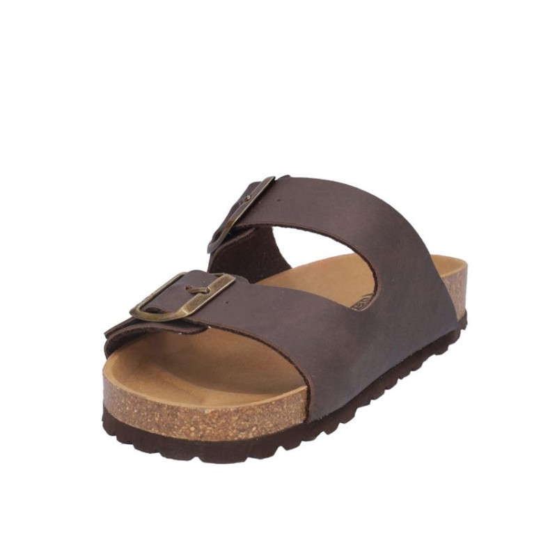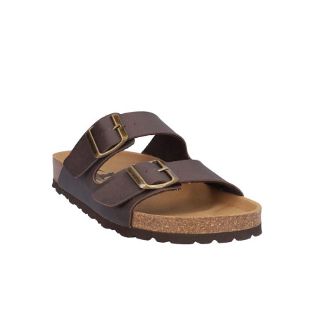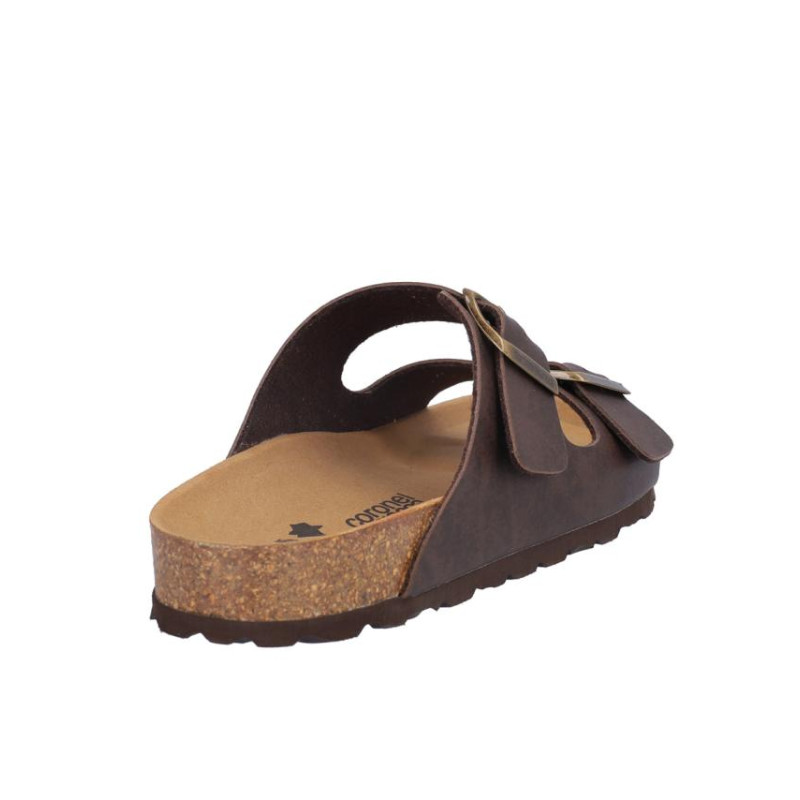 Sandalia señora Coronel Tapiocca en material vegano tabaco, cierre de dos hebillas, altura planta bio acolchada, fabricado en España. Composición: Empeine: Piel. Forro: Sin forro. Planta: Piel. Suela: Fibra sintética. Componente principal: Piel