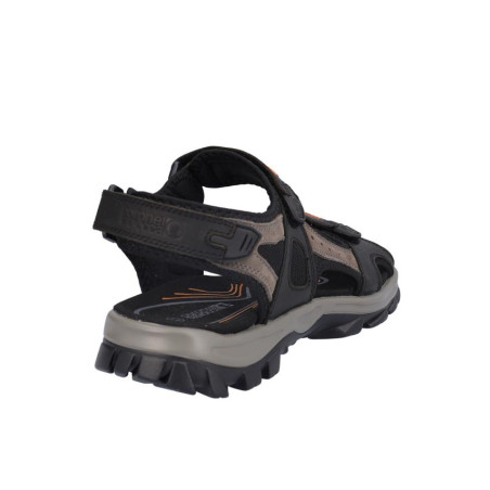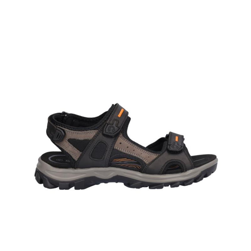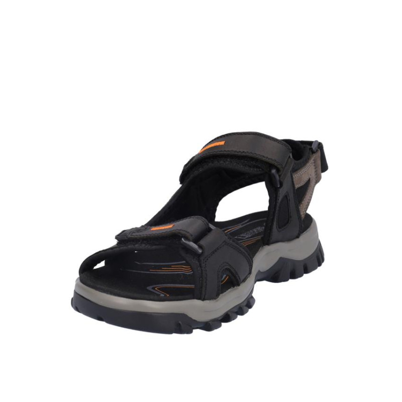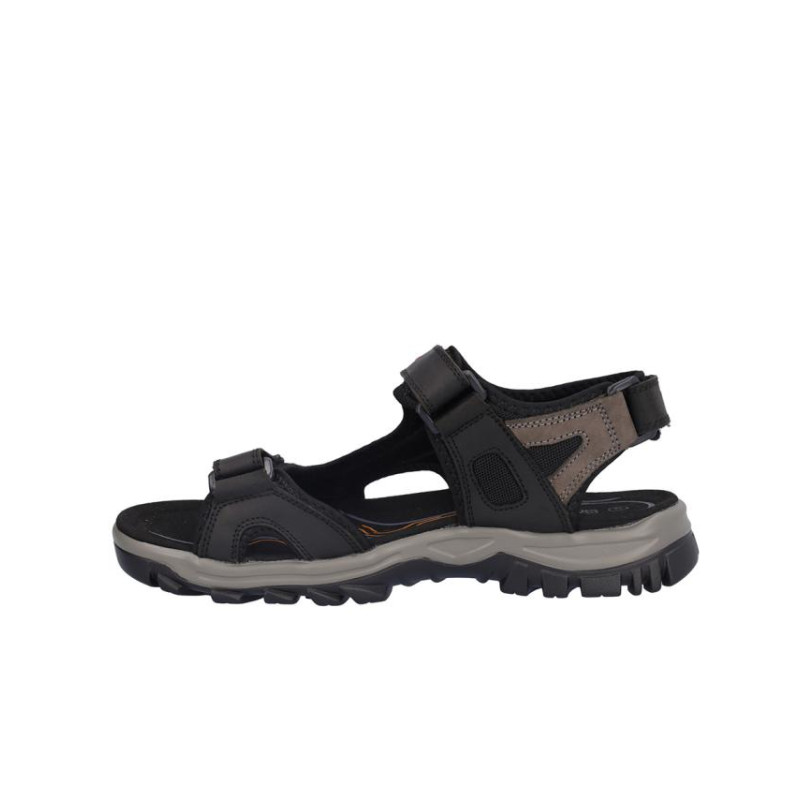 Sandalia caballero de Coronel Tapiocca de piel en color negro, forro y planta textil, suela ligera de phylon de 3 cm altura, cierre de 3 velcros para mejor ajuste. Composición: Empeine: Piel. Forro y planta: Textil. Suela: Eva + caucho