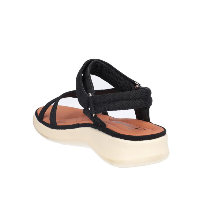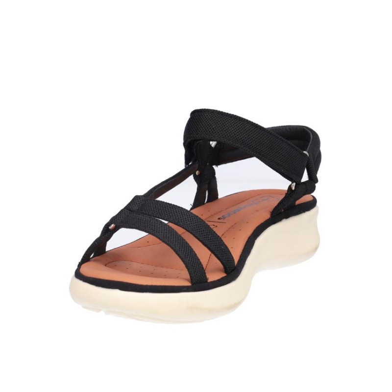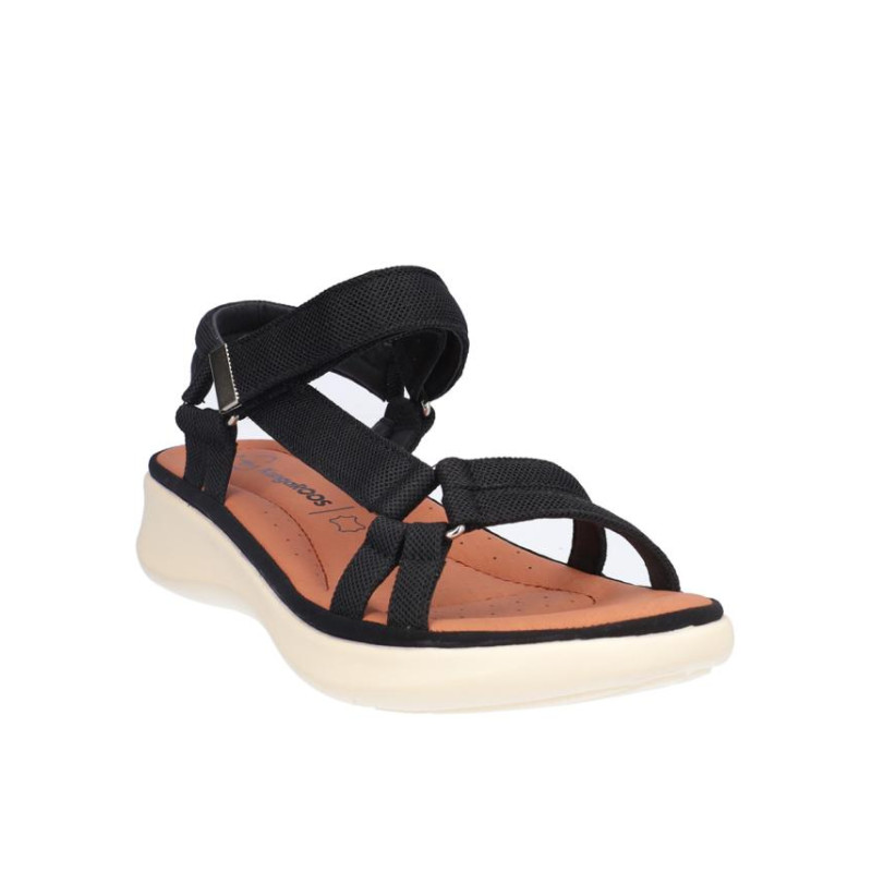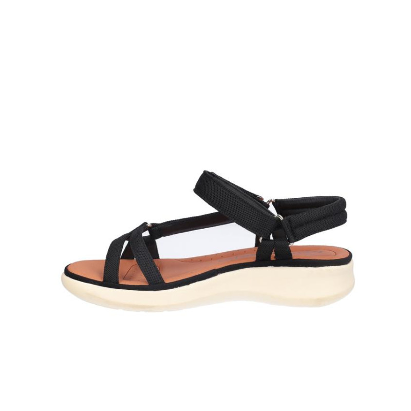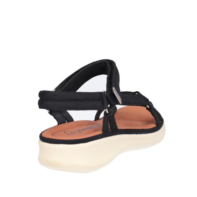 Sandalia Kangaroos señora textil negro, cierre de velcro, forro textil, planta acolchada de piel, suela ligera de eva de 3 cm altura. Composición: Empeine: Textil. Forro: Textil. Planta: Piel. Suela: Eva