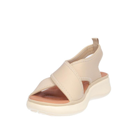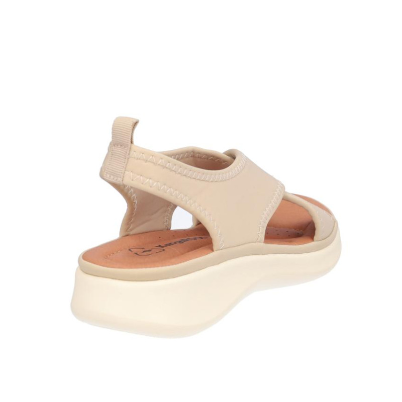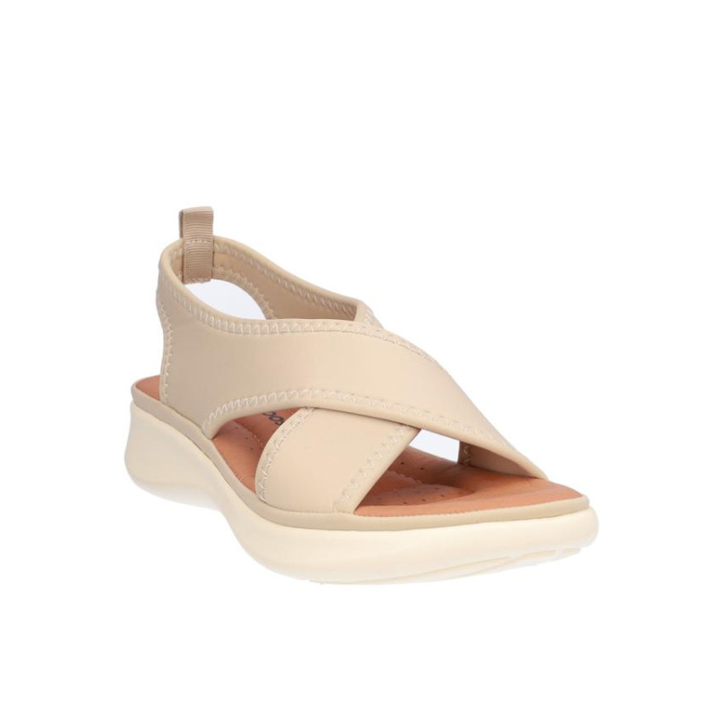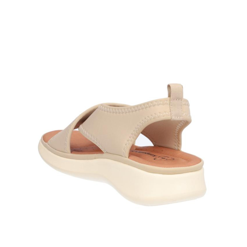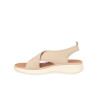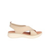 Sandalia cruzada Kangaroos señora textil beige, forro textil, planta acolchada de piel, suela ligera de eva de 3 cm altura. Composición: Empeine: Textil. Forro: Textil. Planta: Piel. Suela: Eva