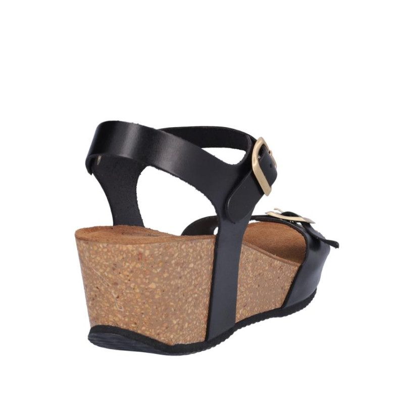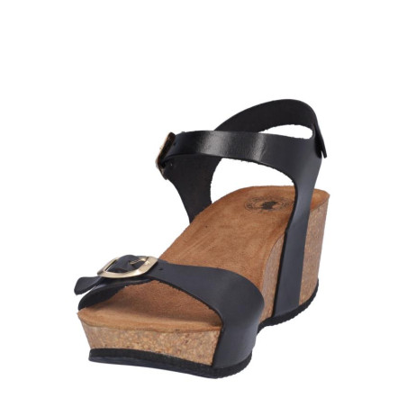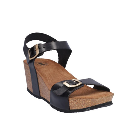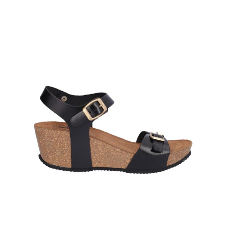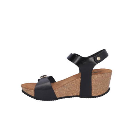 Sandalia señora Coronel Tapiocca piel negro, cierre de dos hebillas, altura planta bio acolchada, fabricado en España. Composición: Empeine: Piel. Forro: Sin forro. Planta: Piel. Suela: Fibra sintética. Componente principal: Piel