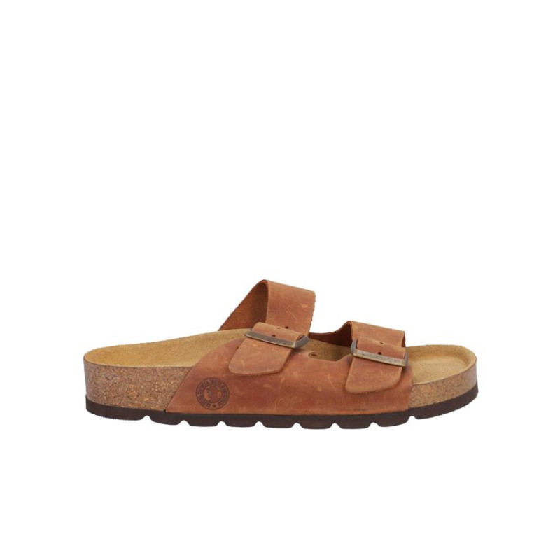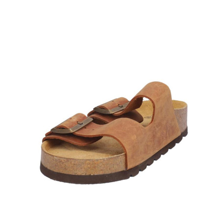 Sandalia señora Coronel Tapiocca en piel camel, cierre de dos hebillas, altura planta bio acolchada, fabricado en España. Composición: Empeine: Piel. Forro: Sin forro. Planta: Piel. Suela: Fibra sintética. Componente principal: Piel