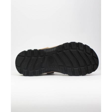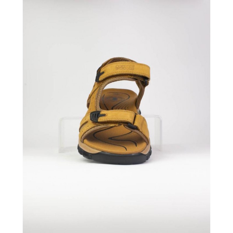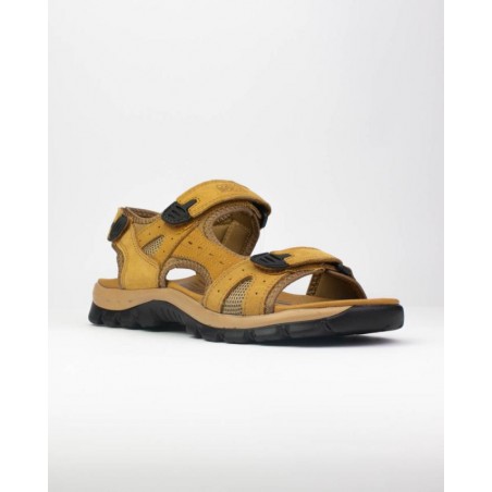 Sandalia piel nobuck color mostaza. Forro textil. Planta eva. Suela phylon ligero. Tres velcros para un mejor ajuste.