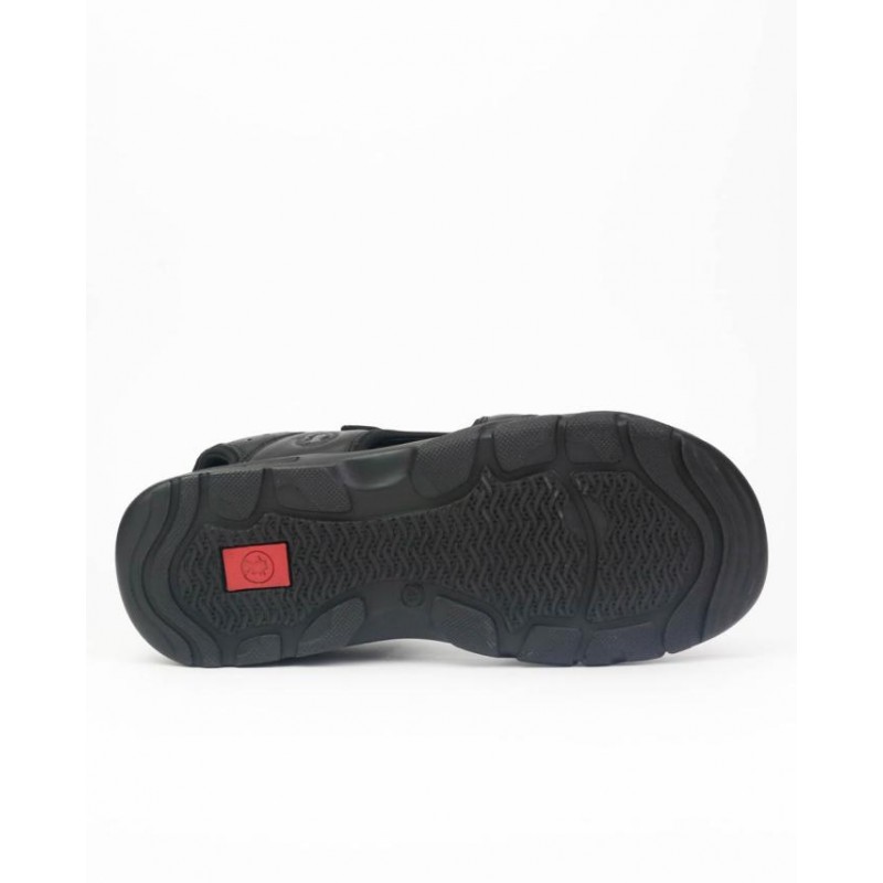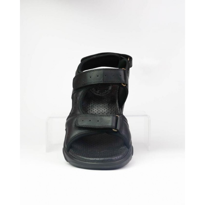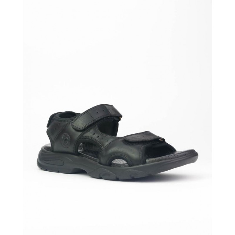 Sandalia caballero, piel negro, cierre de velcro, suela ligera de pu de 3 cm de altura, forro textil, planta bio perforada.