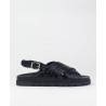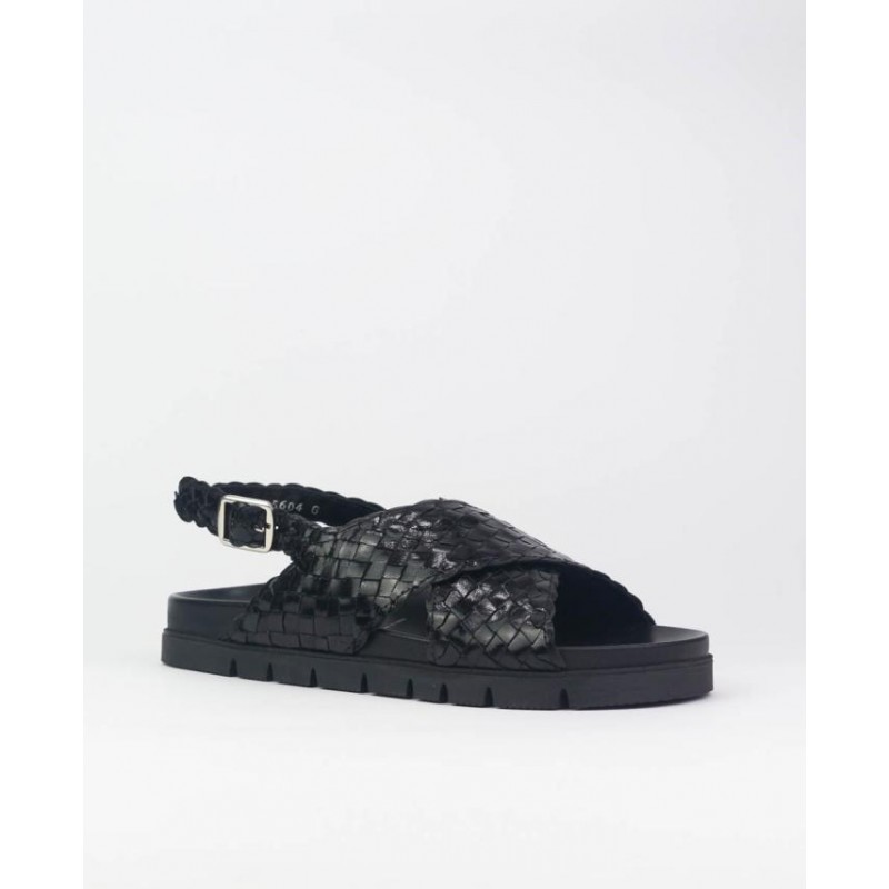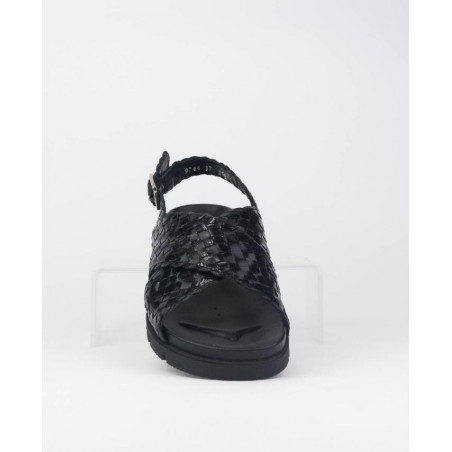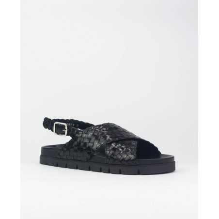 Sandalia piel trenzada en color negro Pons Quintana. Planta de piel. Cierre hebilla. Planta bio en material piel negro.