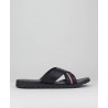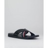 Sandalia pala cruzada caballero Tommy. Franja superior bicolor e inscripción de marca. Piel. Forro piel. Suela goma.