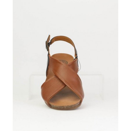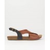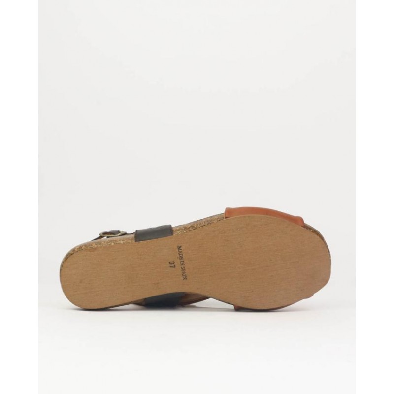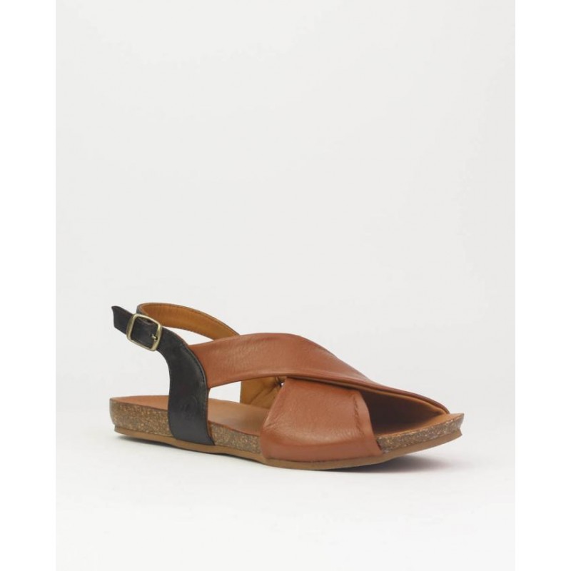 Sandalia señora combinado piel cuero/marrón, cierre hebilla lateral, planta bio, forro piel, fabricado en España