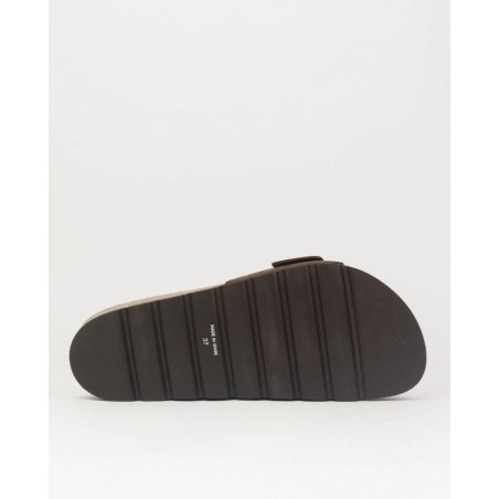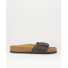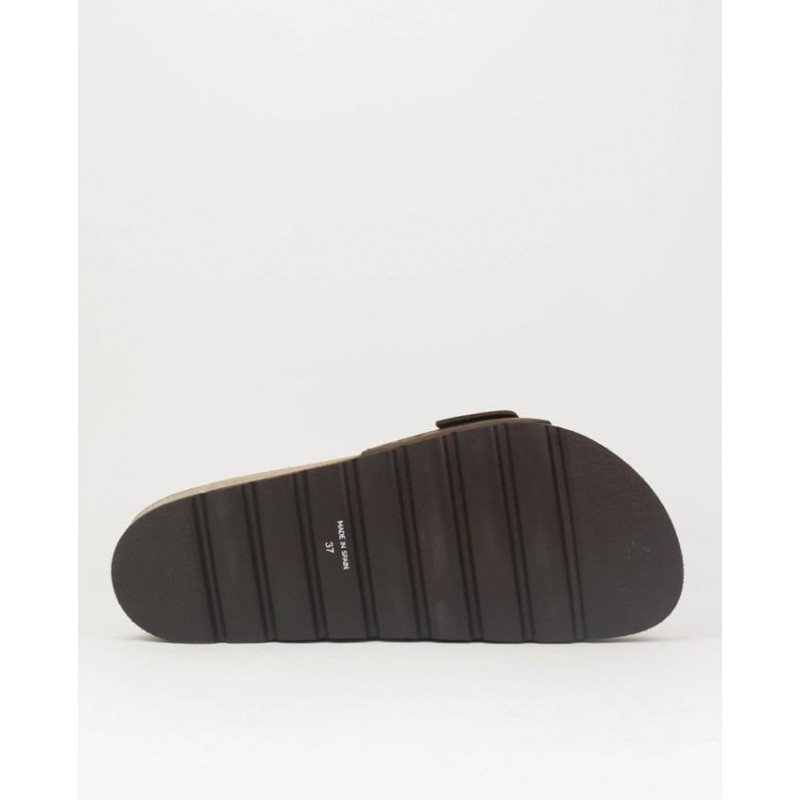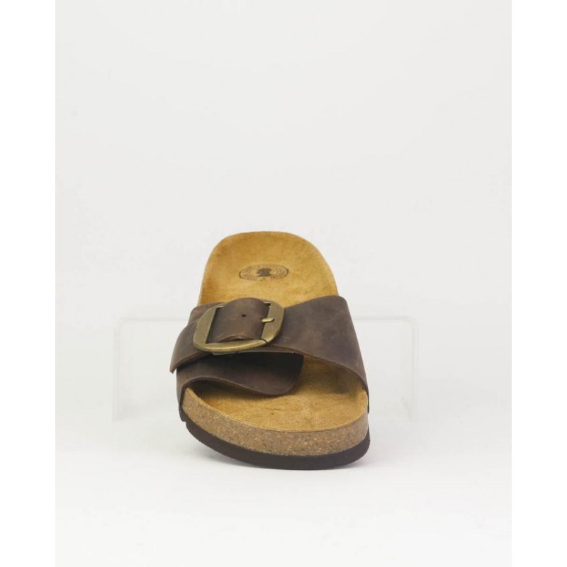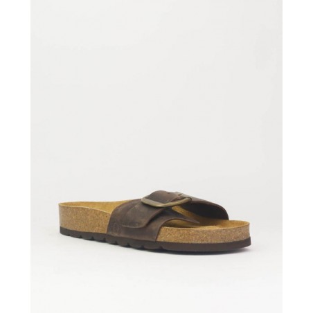 Zueco señora piel marrón oscuro, hebilla grande, altura planta bio acolchada, fabricado en España
