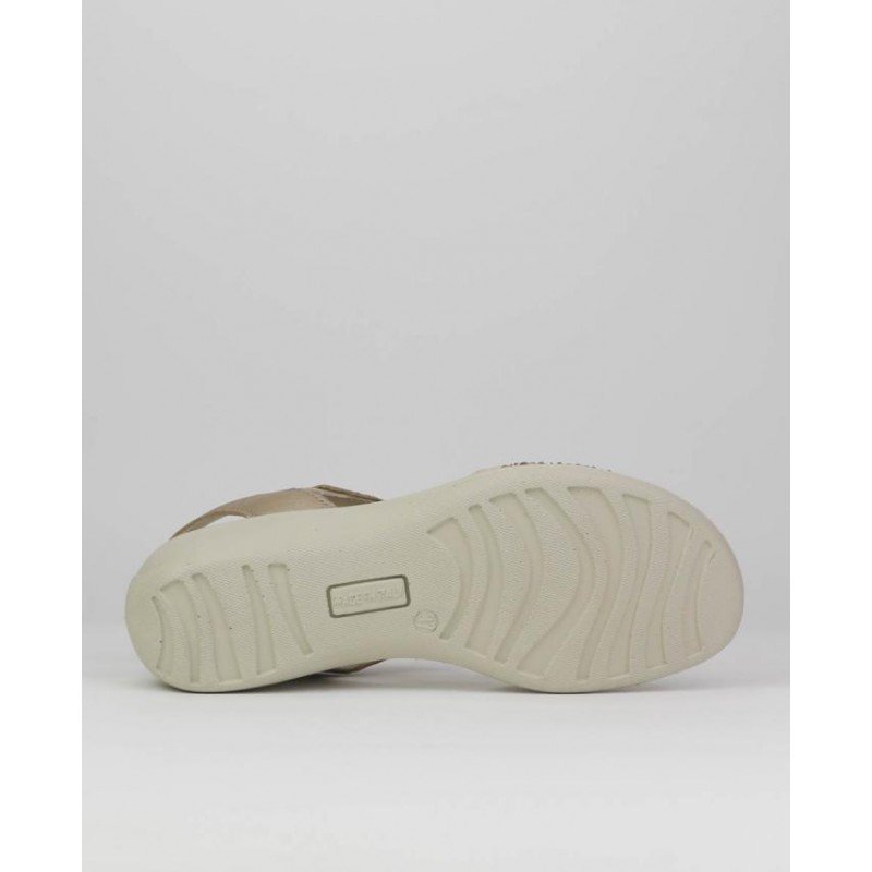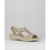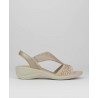 SAndalia piel combinada Imac. Fabricado en color beige, esta construida con material y elastico como pieza para ajuste al pie, dos en los laterales y un elastico central para ajustar. Incrustaciones de piedra en Pala como adorno. Forro en planta tejido. Suela de 3 cm de altura según talla. Fabricado en Italia.