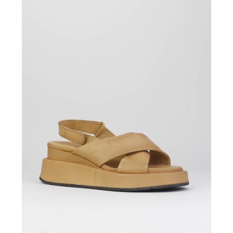 Sandalia cuña mujer Mjus. Fabricado en piel con forro de piel, Sandalia de cuña de 2.5 cm de altura y suela de 3.5 cm de altura. Suela forrada en piel. Cierre velcro.