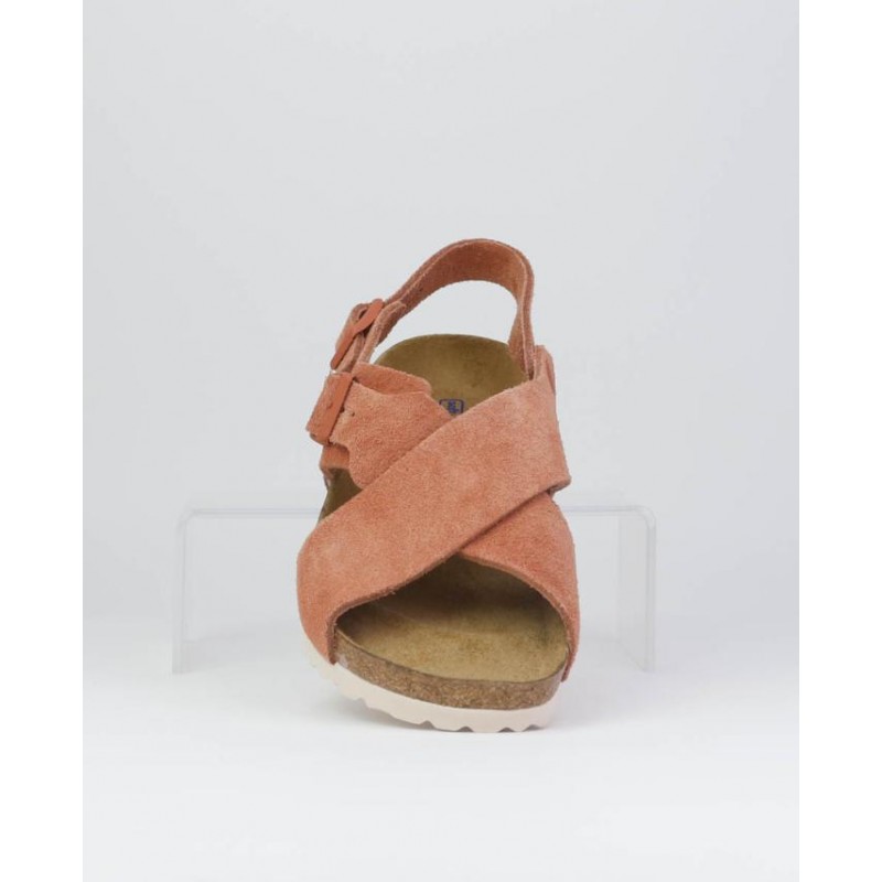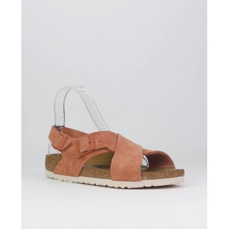 Sandalia Birkenstock serraje Coral. Zueco de la marca Germana, con dos hebillas, una en empeine y otra en trasero para un ajuste al pie. Planta bio.