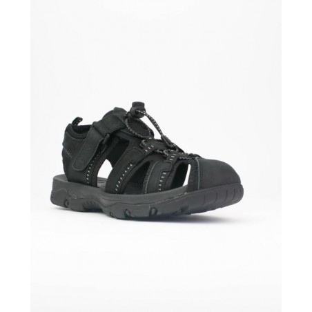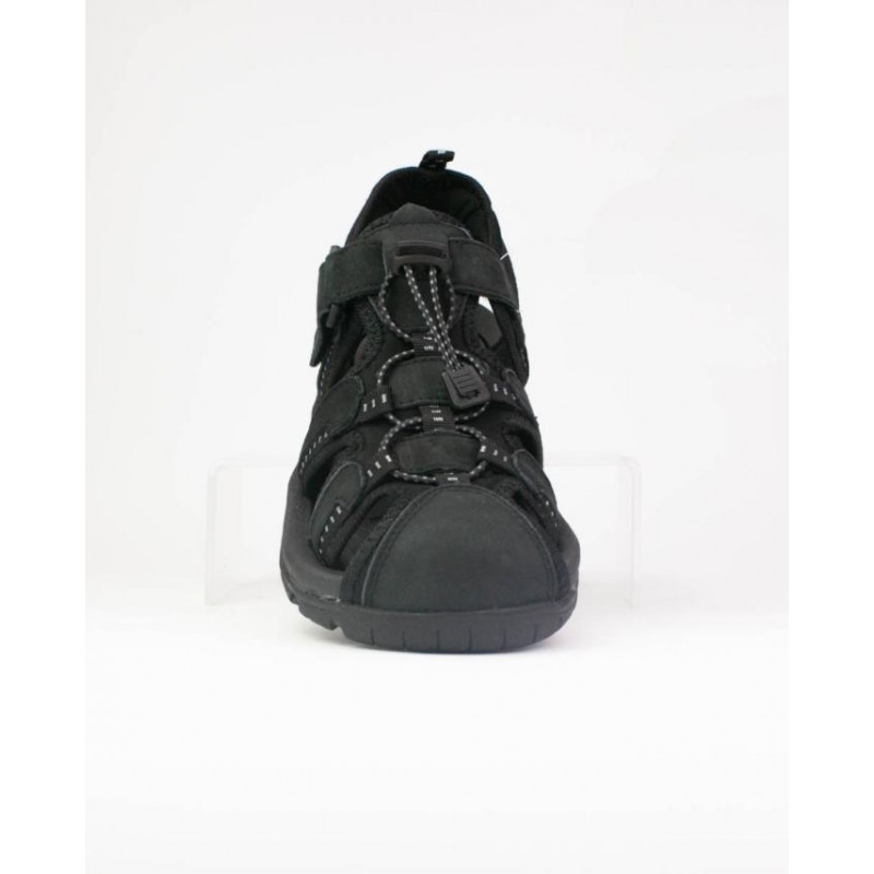 Sandalia nobuck piel negro. Cierre Velcro. Forro textil. Suela goma mas planta eva ligera , resistente al agua con una de 3cm total.