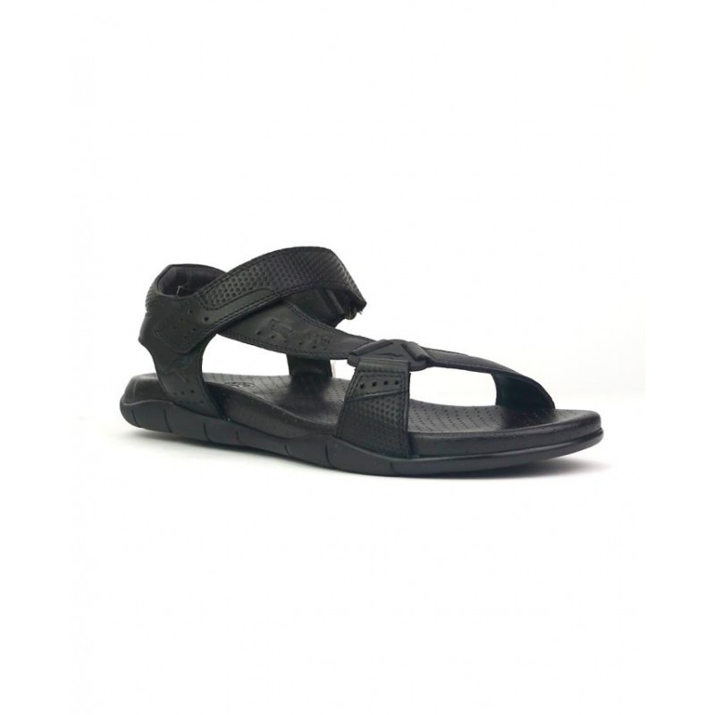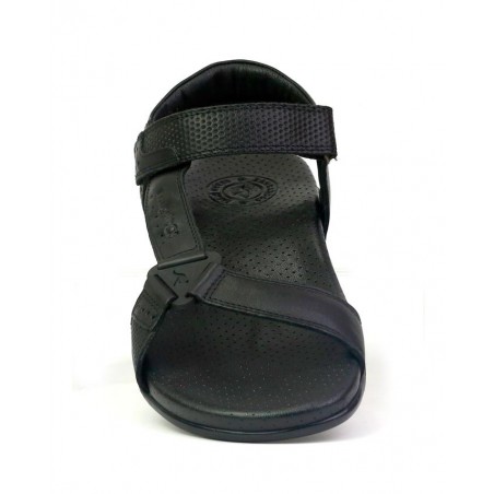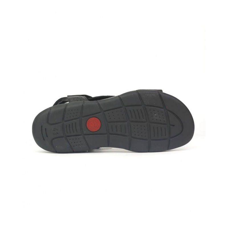 Sandalia caballero piel negro, cierre de velcro, suela de 2,5 cm de altura, forro de piel, planta bio perforada