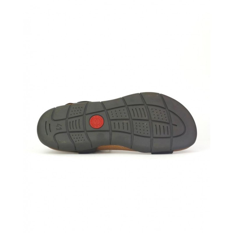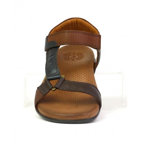 Sandalia caballero piel cuero/marrón, cierre de velcro, suela de 2,5 cm de altura, forro piel, planta bio perforada
