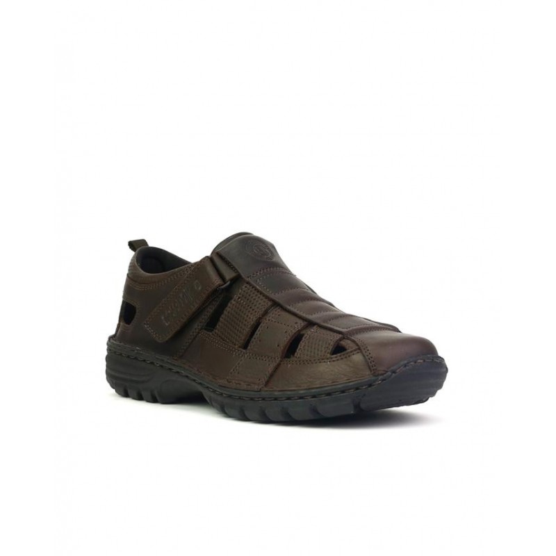 Sandalia cerrada de caballero piel marrón, cierre de velcro, suela ligera de pu de 3 cm de altura, forro textil, plantilla extraible.Composición: Empeine: Piel. Forro y plantilla: Piel/Tejido. Suela: Fibra sintetica. Componente principal: Piel