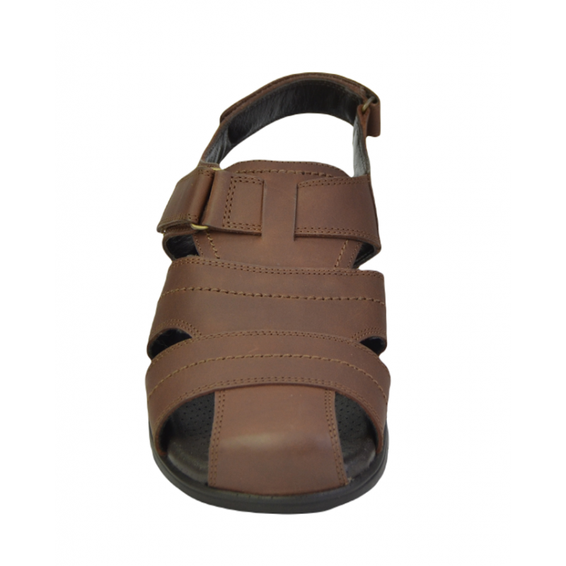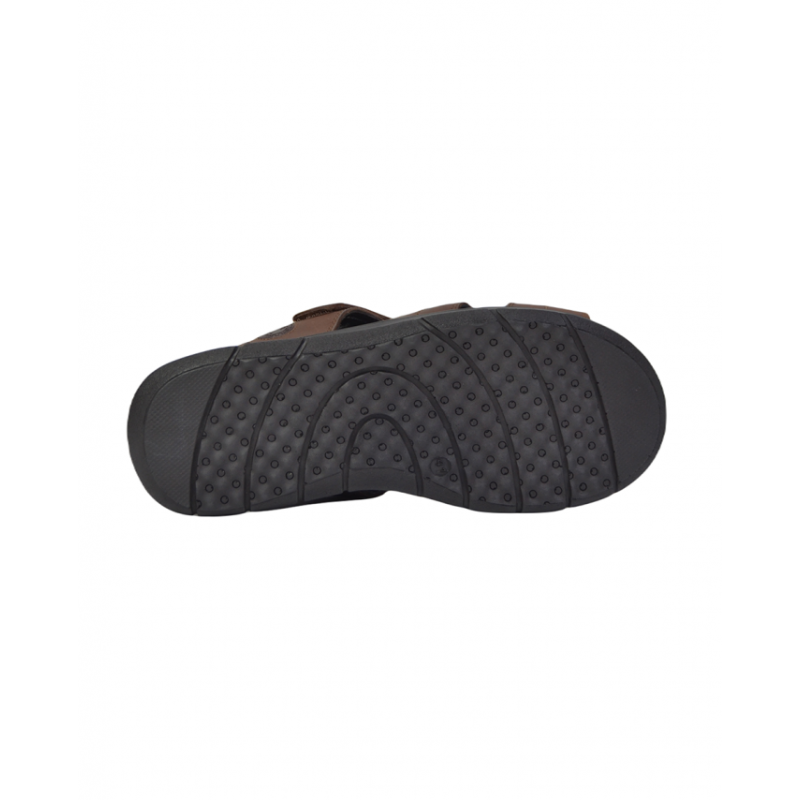 Sandalia caballero piel color cafe, cierre de velcro, suela ligera de 2 cm de altura, forro piel/texil, plantilla bio perforada.Composición: Empeine: Piel. Forro y plantilla: Piel. Suela: Fibra sintetica. Componente principal: Piel