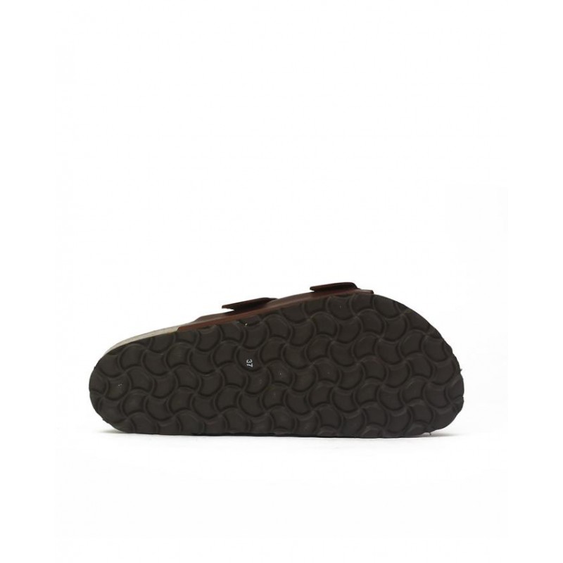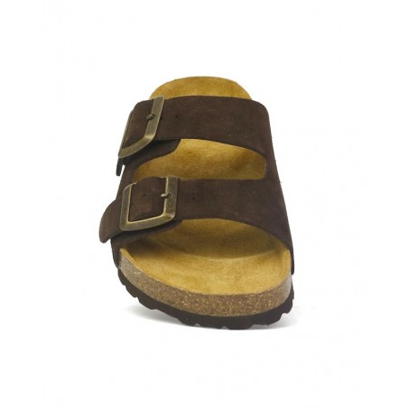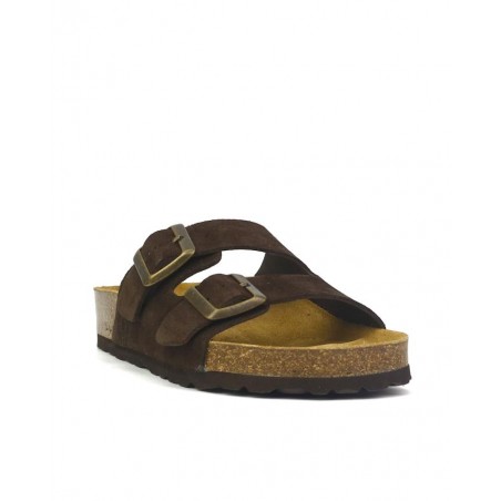 Zueco anatómico señora en piel marrón oscuro, altura planta bio acolchado, cierre de dos hebillas, fabricado en España.Composición: Empeine: Piel. Forro y planta: Piel. Suela: Fibra sintetica. Componente Principal: Piel