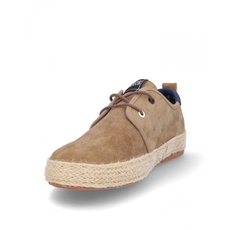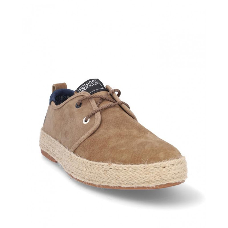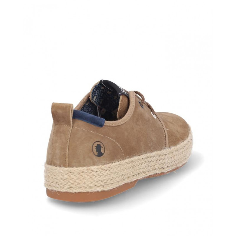 Zapatillas de caballero Coronel Tapiocca en ante color topo con esparto, cierre de cordones, forro textil, plantilla extraible textil, suela de 1 cm altura. Composición: Empeine: Piel. Forro y plantilla: Textil. Suela: Fibra sintética