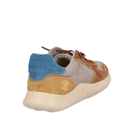 Zapatillas de caballero Coronel Tapiocca en piel/textil combinado multicolor cuero/ice, cierre de cordones, forro textil, plantilla textil extraible, suela ligera de 2,5 cm altura. Composición: Empeine: Piel/textil. Forro y plantilla: Textil. Suela: Eva
