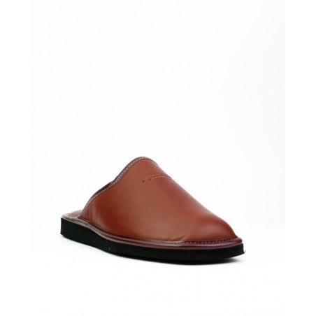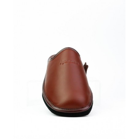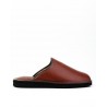 ZAPATILLA CASA PIEL MARRON CON INTERIOR CALIDO Y ACOLCHADO