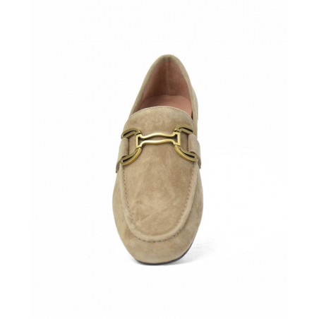 MOCASIN marca BIBI LOU modelo MOCASIN SEÑORA HEBILLA SERRAJE. Fabricado en color taupe. Suela personalizada.