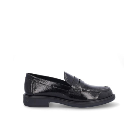 Mocasin de señora Elio Berhanyer fabricados en piel charol color negro. Forro combinado piel y textil, plantilla de piel, suela con tacon de 3 cm y plataforma de 1'5 cm altura. Composición: Empeine: Piel. Forro: Piel/textil. Plantilla: Piel. Suela: Fibra sintetica. Componente principal: Piel
