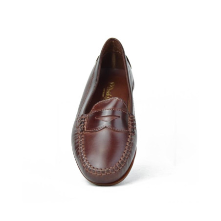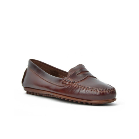 Mocasin marca LEPORI modelo ANTIFAZ SEÑORA CONDUCTOR. Fabricado en piel marron. Suela personalizada.