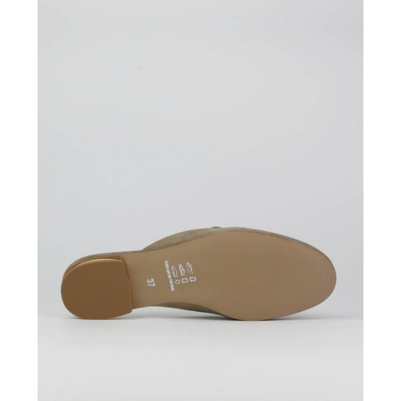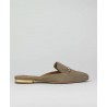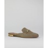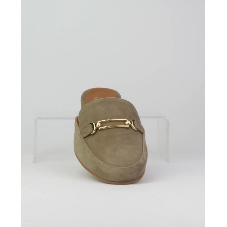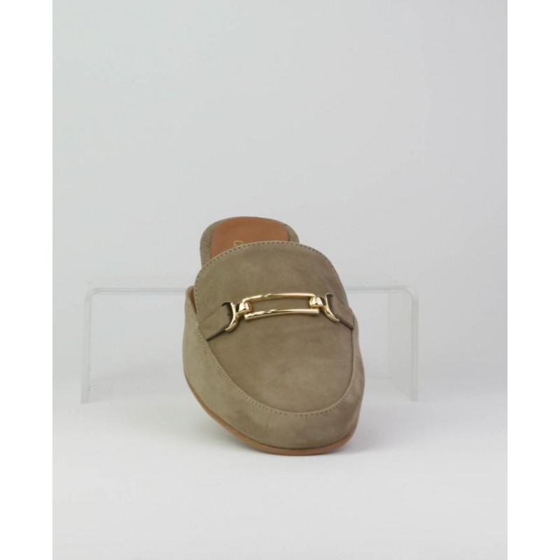 Zueco señora en ante piel, con hebilla en copete. Forro piel. Tacon detalle metalico.