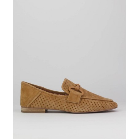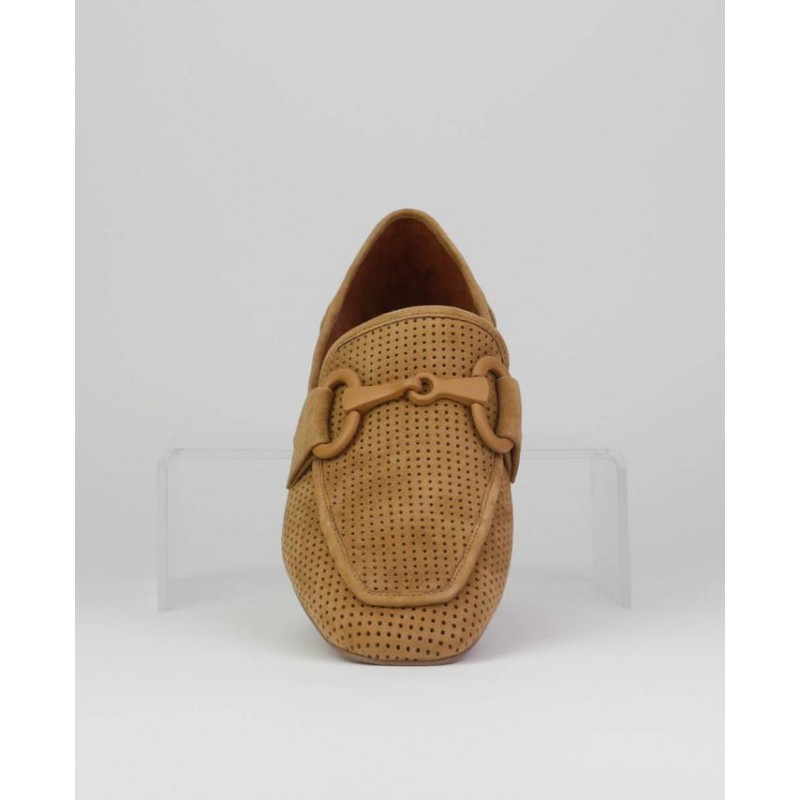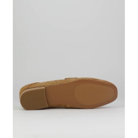 Mocasín señora perforado piel BiBi LOU. Color camel. Piel. Forro piel. Hebilla delantera. Tacón aprox. 1,5cm.
