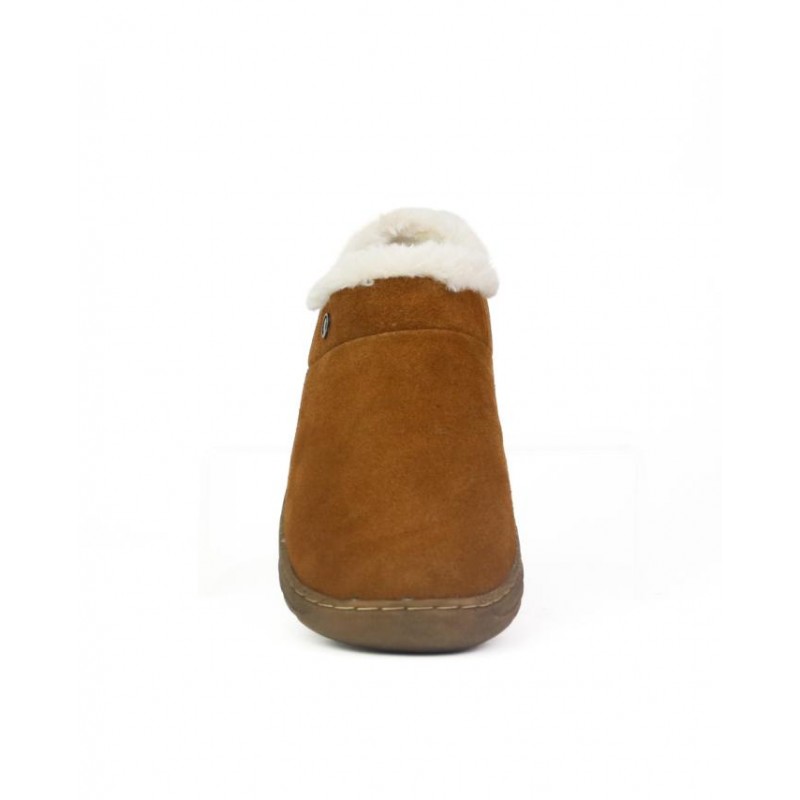 Zapatillas de andar por casa Coronel Tapiocca mujer. Fabricadas en piel serraje havana. Pelo en cuello y pelo calido en interior de la zapatilla. Al ser piel y la suela de goma permite su uso por calle. Composición: Empeine: Piel. Forro y planta: Tejido. Suela: Fibra sintetica. Componente Principal: Piel