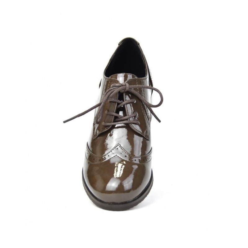 Zapato alto señora de Javier Larrainzar en color taupe con cierre de cordones y suela con tacón. Altura tacón 5 cm. Composición: Empeine: Otros materiales. Forro y Plantilla: Otros materiales. Suela: Fibra Sintética.