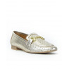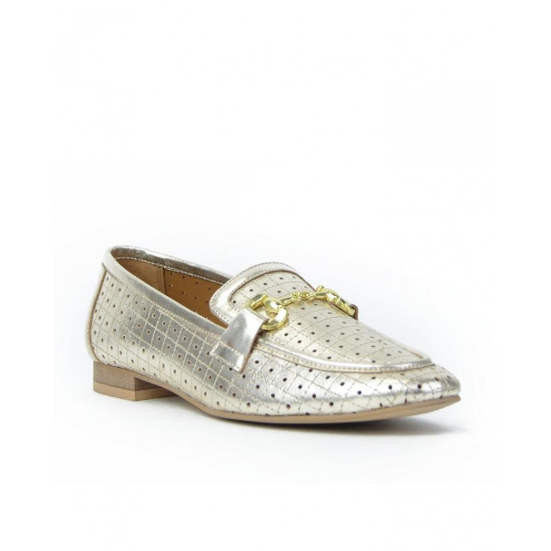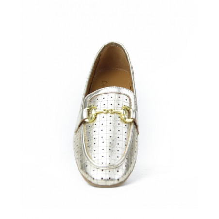 Mocasin perforado en piel metalizado marca Caramelo. Pieza metálico en copete. Componentes exterior en piel, interior piel y suela de otros materiales.
