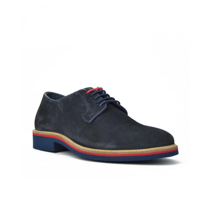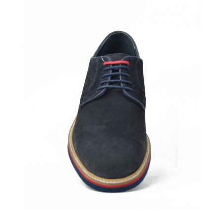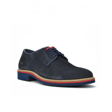 Zapato cordones caballero Angel Infantes. Fabricado en serraje colmena color marIno de primera calidad. Vivo rojo. Cierre cordones. Suela ligera fabricado en EVA. Altura de tacón 3 cm.