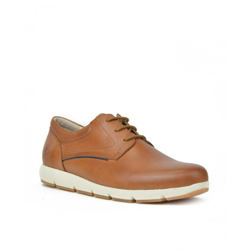 Zapato sport caballero Coronel Tapiocca fabricado en piel camel, cierre de cordones, forro piel y textil, plantilla extraible textil, suela ligera de 2,5 cm altura. Composición: Empeine: Piel. Forro: Piel y textil. Plantilla: Textil. Suela: eva + caucho. Componente principal: Piel